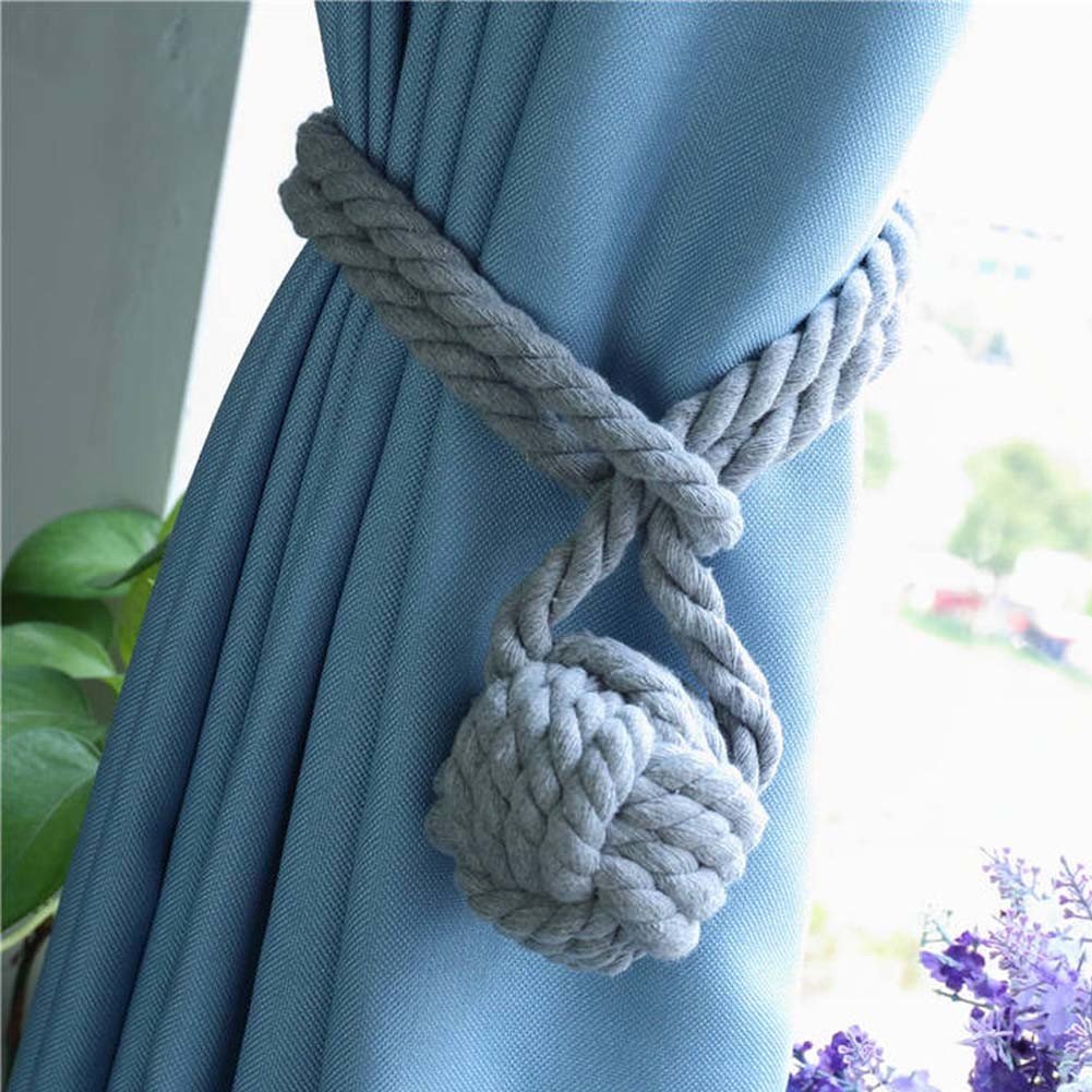 Home > 2 Pcs Decorative Tassel Buckle Cord Drapery Tie Backs Knitting Knot Cotton Rope Curtain Tiebacks, Grey