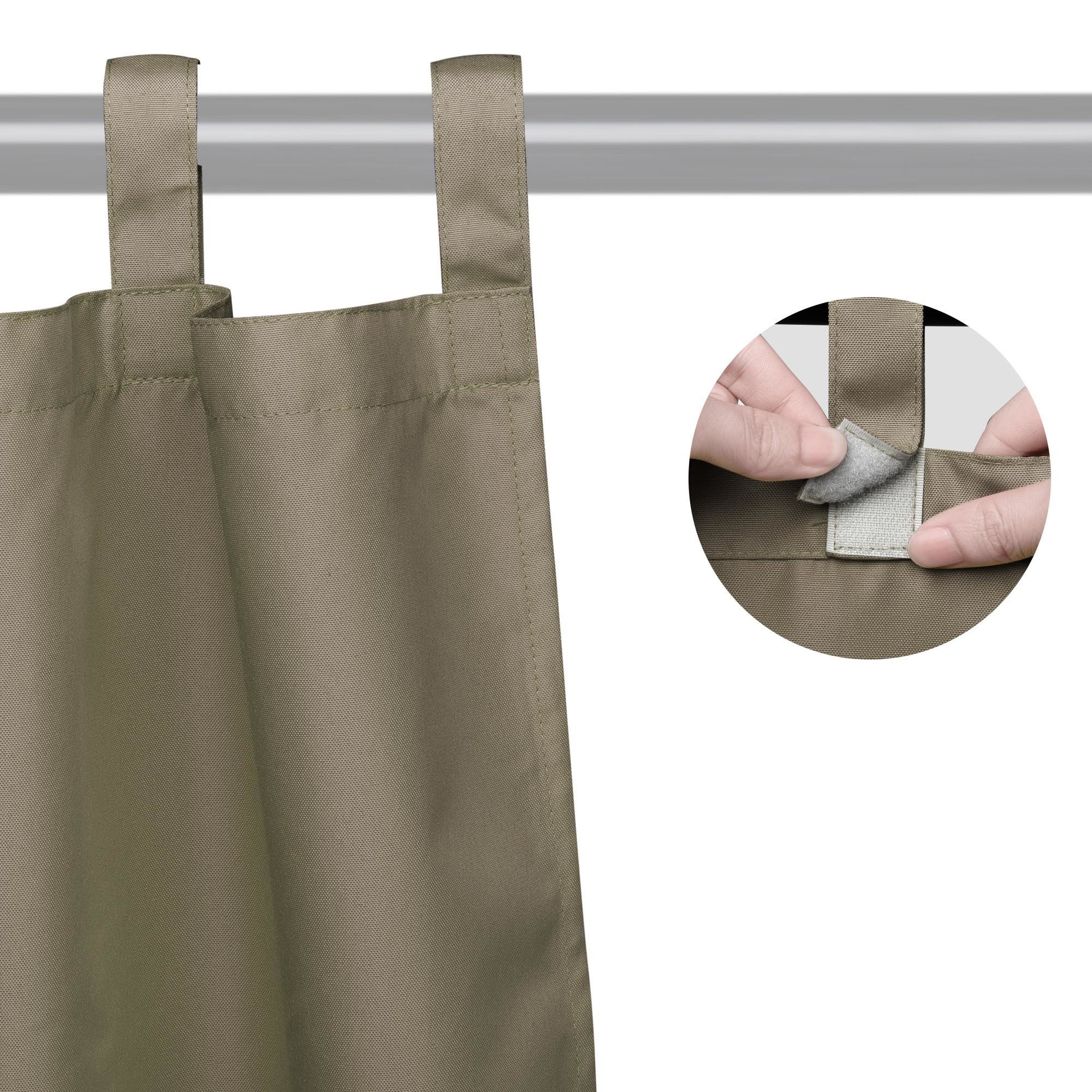 - Hook & Loop Fastener for Easy Installing - 2 pcs 54"x84" Outdoor Curtain Panels, tab top with hook & loop fastener, much easier for attaching to the rod, 4" long tab top perfectly fit curtain rod with diameter up to 2"