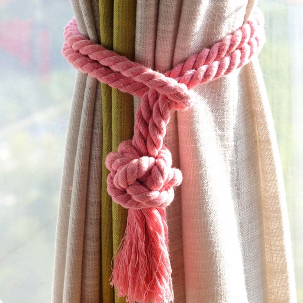 2Pcs Handmade Cotton Rope Curtain Holder Tie Backs Tassel Drapes Ball Tiebacks for Window Sheer Blackout Panels, Pink 2Pcs Handmade Cotton Rope Curtain Holder Tie Backs Tassel Drapes Ball Tiebacks for Window Sheer Blackout Panels, Pink