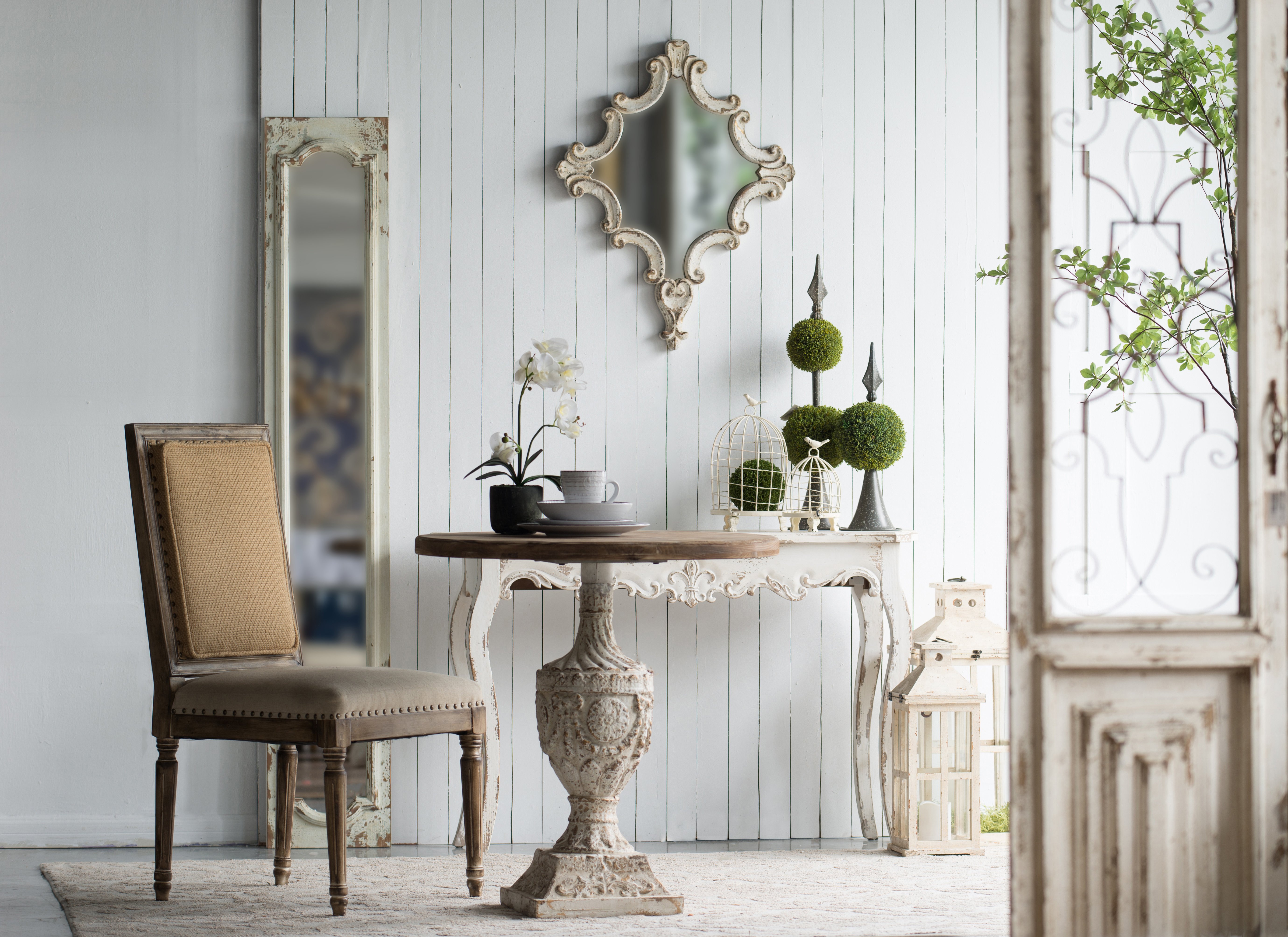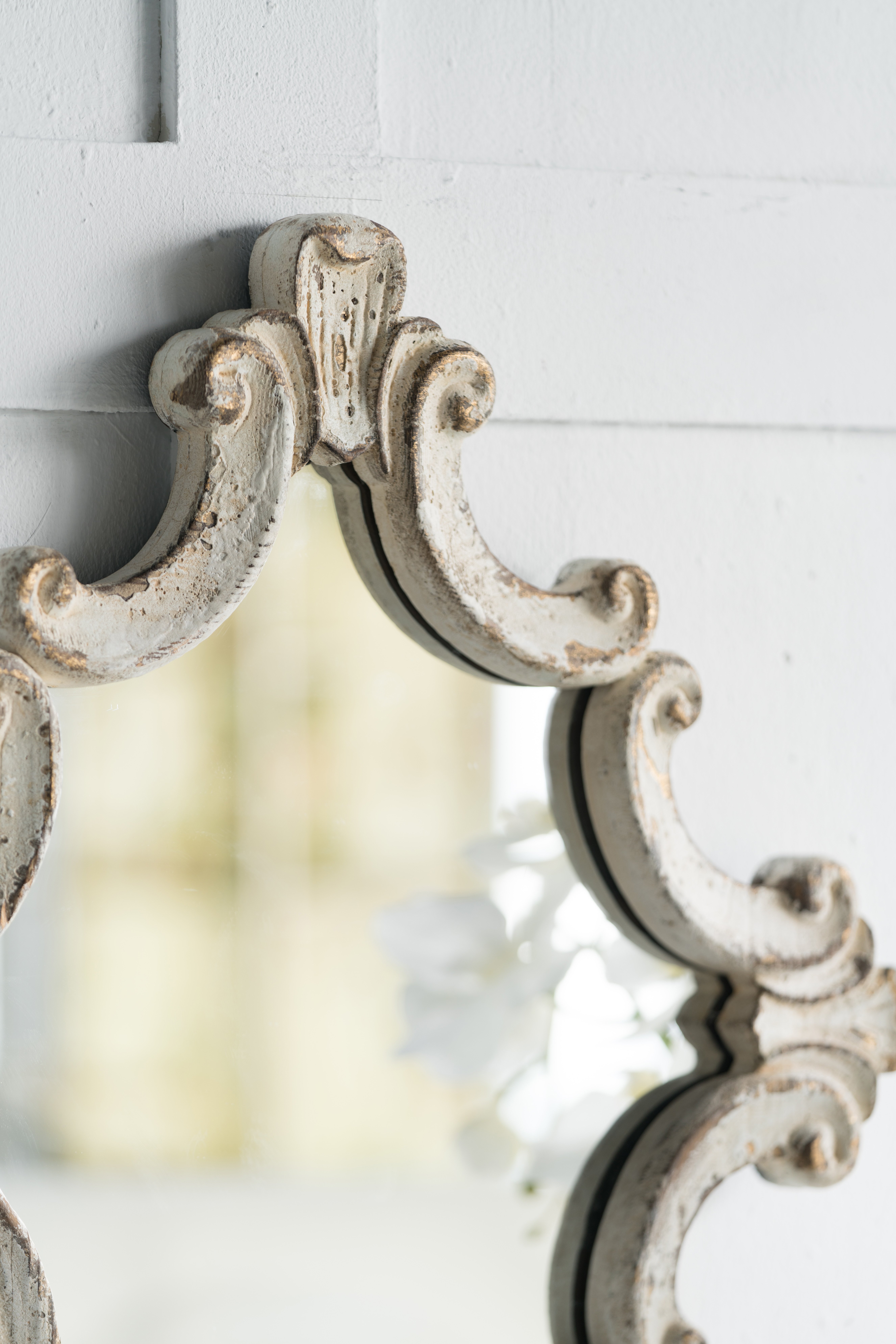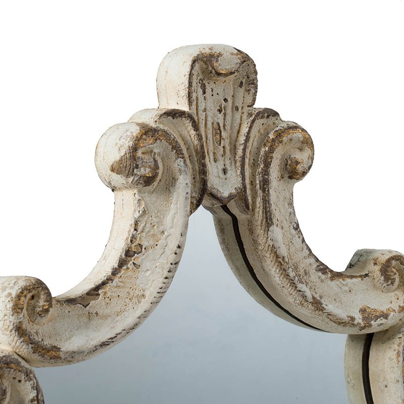 Taking the best aspects of French country and vintage style, this regal accent mirror boasts an abstract diamond silhouette that is embellished with intricate scrollwork along the frame. Crafted from fir wood, this mirror is provided with durable, long-lasting protection, while the distressed white finish ensures it can complement almost all interior styles.