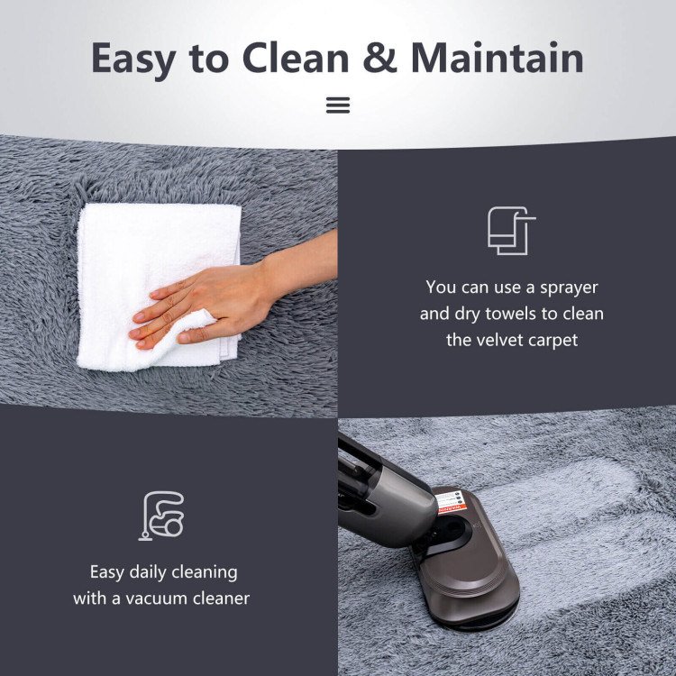 4.Easy Care and Maintenance: This easy-to-clean carpet brings great convenience to your life. For daily cleaning, you can easily vacuum the dust, and debris from the surface of this pile of carpet. If there is a liquid spill, you can use soap and a spray bottle to clean the carpet. If you need to deep clean your carpet, please try to wash it with cold water by hand gently.