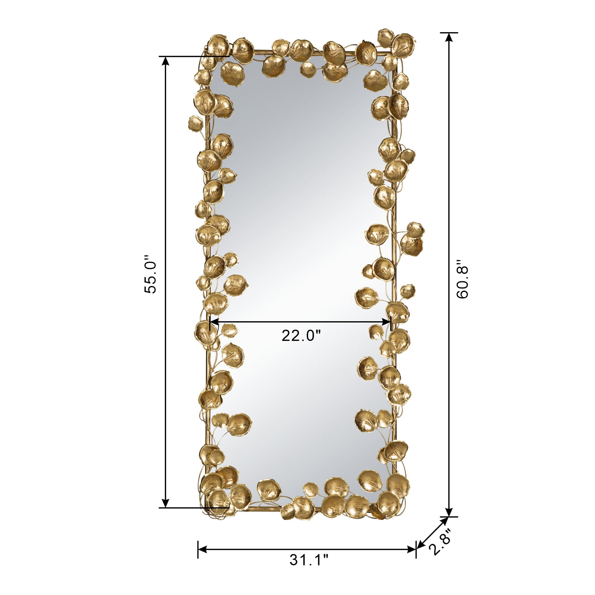 With its grand rectangle silhouette, solid iron and eco-friendly MDF wood construction, and playful golden leaf accents, this decorative full-length mirror will infuse your space with an eye-catching whimsy. Measuring a large 61H x 31W x 3D, it will easily capture your whole reflection while also adding a burst of fun to your daily routine.