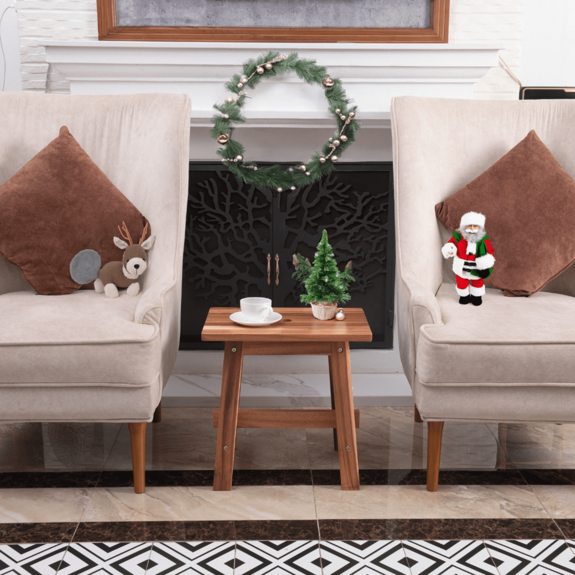 Wooden Stool is made of 100% Acacia Wood - It is natural brown in colour with an attractive natural grain, giving a warm, rich touch to any home. The surface of wood is finished by water-base coating and light glossy coating which allows it can be used both indoor & outdoor.