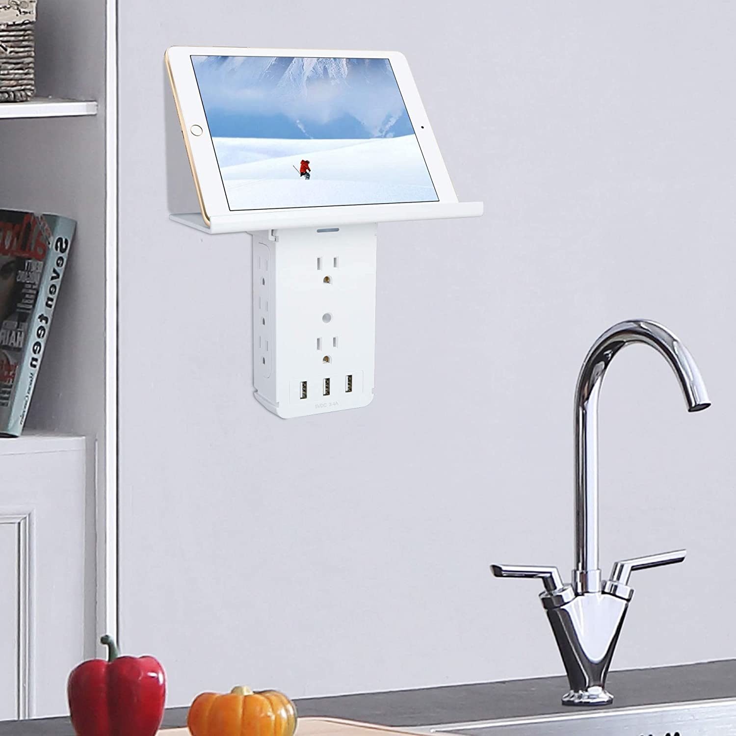 Wall Outlet Extender | This multifunctional wall plug has 6 AC outlets (15 A)with 1020J surge protector wall mount, 3 USB ports(5V/3.4A total), surge protection indicator light, suitable for all types of standard electrical outlets.