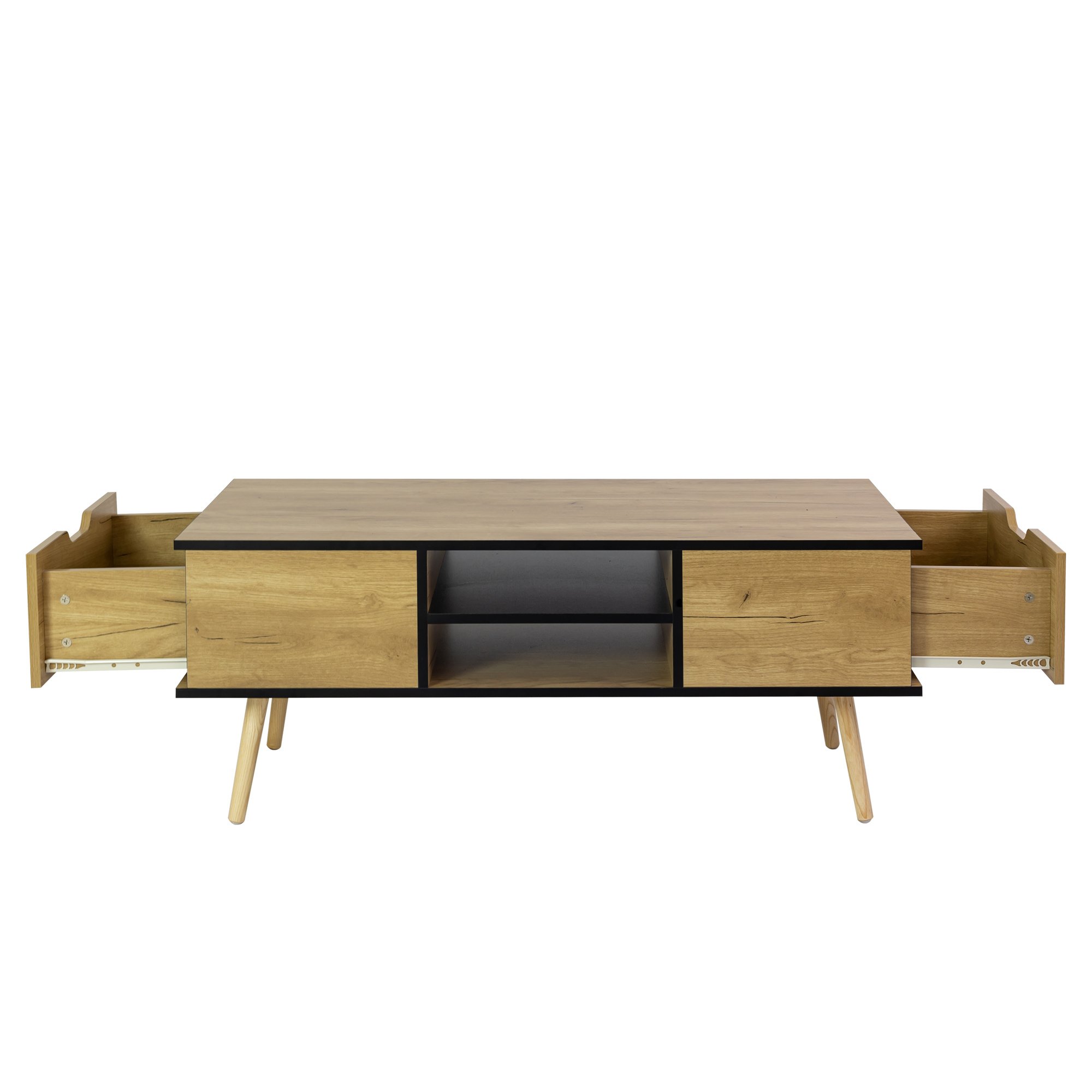 This coffee table is designed in two colors. The large drawers on the left and right sides of the table and the two open spaces in the middle are big enough to hold your most frequently used items, such as laptops, books and projectors, to keep the desktop clean and tidy.