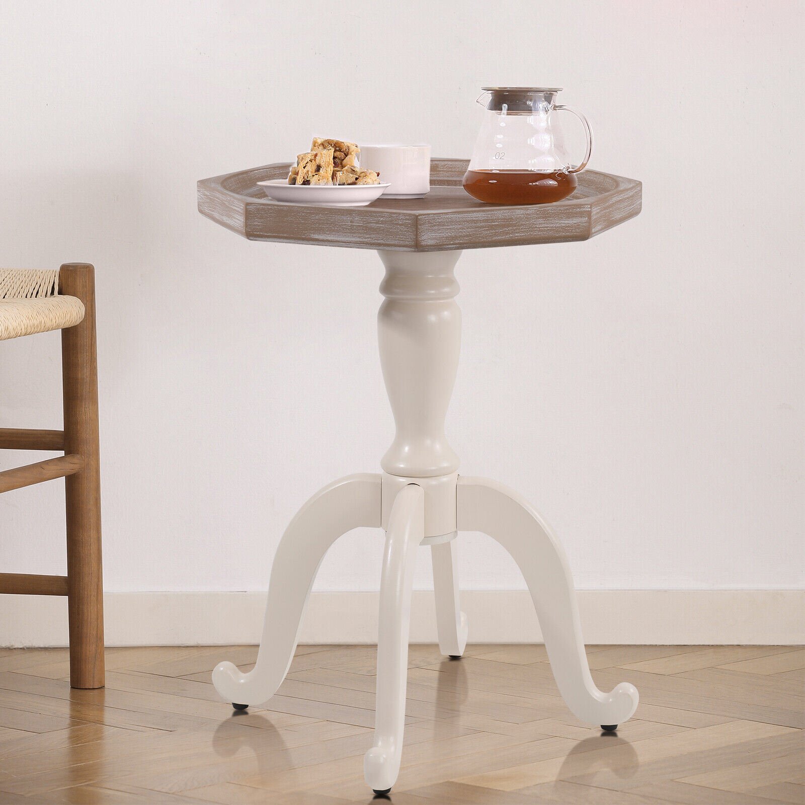 • Spider Leg Design & Sturdy Construction: This elegant end table features a rustic Distressed Octagonal Top and four gracefully white spider-shaped legs creating a unique slim and elegant design. Its curved; smooth design blends well with any style of room decor. The base have screw-in protective feet; helping keep chairs stable and adapting to the uneven floor.