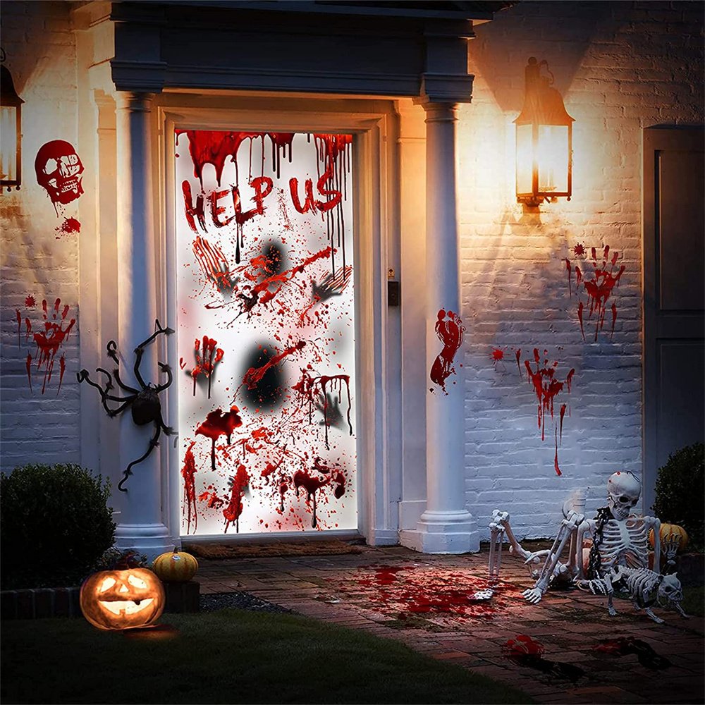 Creepy Handprints & Footprints: These stickers feature stylish designs like bloody handprints and footprints that stick easily to mirrors, fridges, and even floors. Embrace your creepy side and let these Halloween decorations turn your space into a haunted hideout.