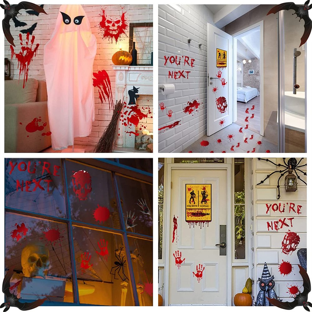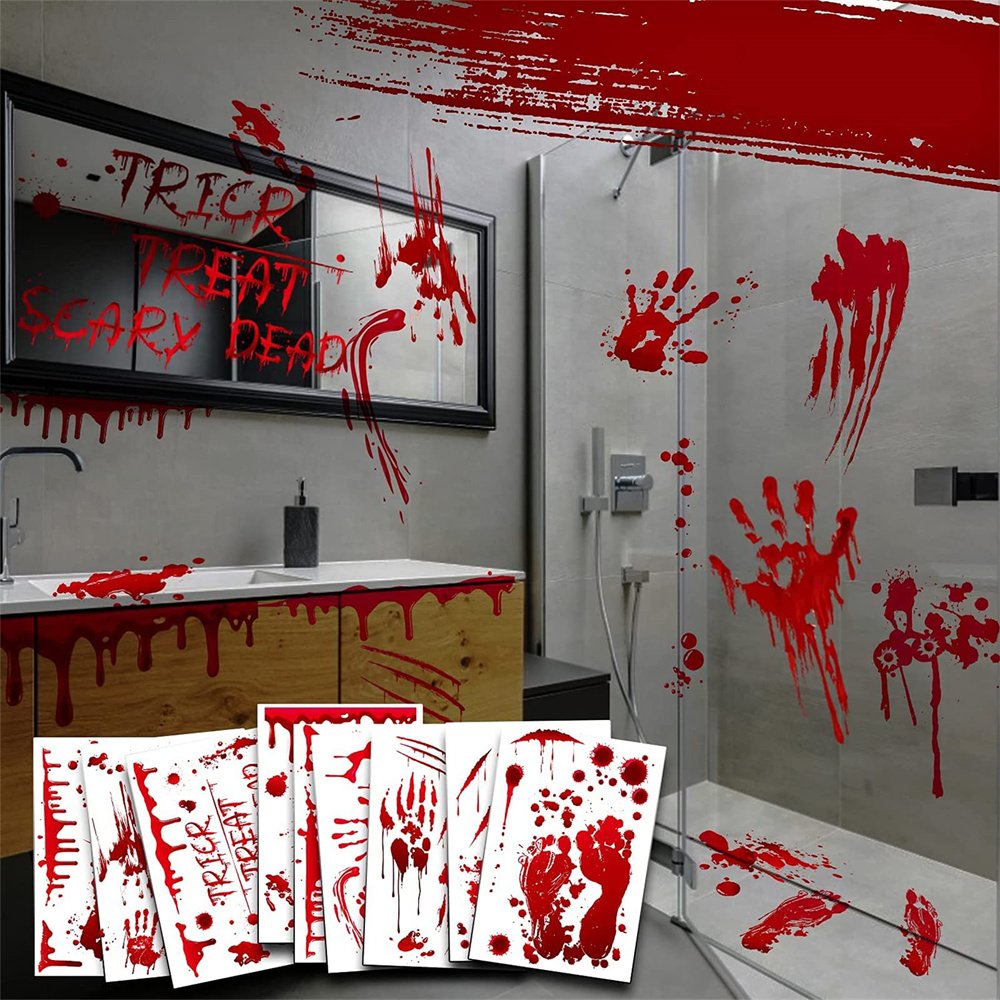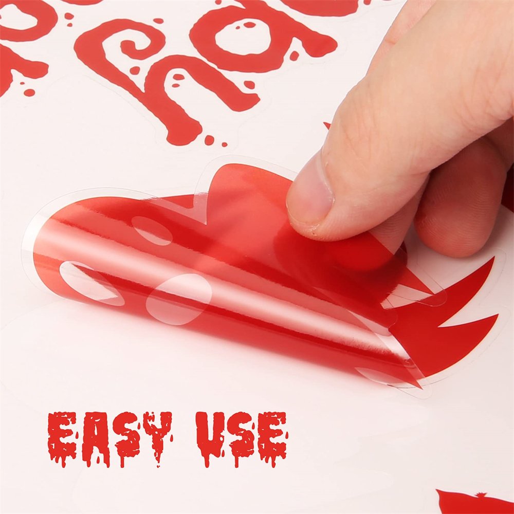 Waterproof & Easy Application: Crafted from waterproof PVC material, these self-adhesive stickers are both reusable and easy to peel off. They won't stain surfaces, making them ideal for windows and glass doors. Their versatile design, featuring splashes, drops, and prints, adds an eerie touch to any smooth surface.