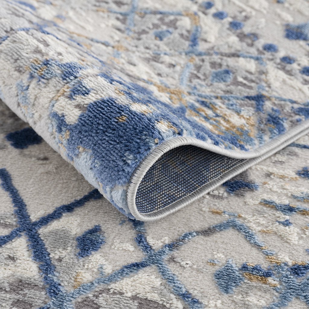 Add a fashionable style to your living space with the Madison Park Hannah Moroccan Area Rug. This machine woven, cut area rug features a blue and cream globally inspired print creating a rich and beautiful, look and feel. The medium soft pile provides simple comfort, as a transparent sprayed latex reverse helps to prevent rug from sliding making it well suited to high-traffic areas in your home. Easy to clean with a vacuum or spot cleaning, while also stain and fade resistant - this area rug brings a splash of color and a textural element to any home decor. This woven area rug is OEKO-TEX certified, meaning it does not contain any harmful substances or chemicals to ensure quality comfort and wellness. Available in multiple colors and sizes, this rug is perfect for any living room, family room, and or other room decor. A rug pad is highly recommended to keep the rug more secured in place; Rug pad sold separately.