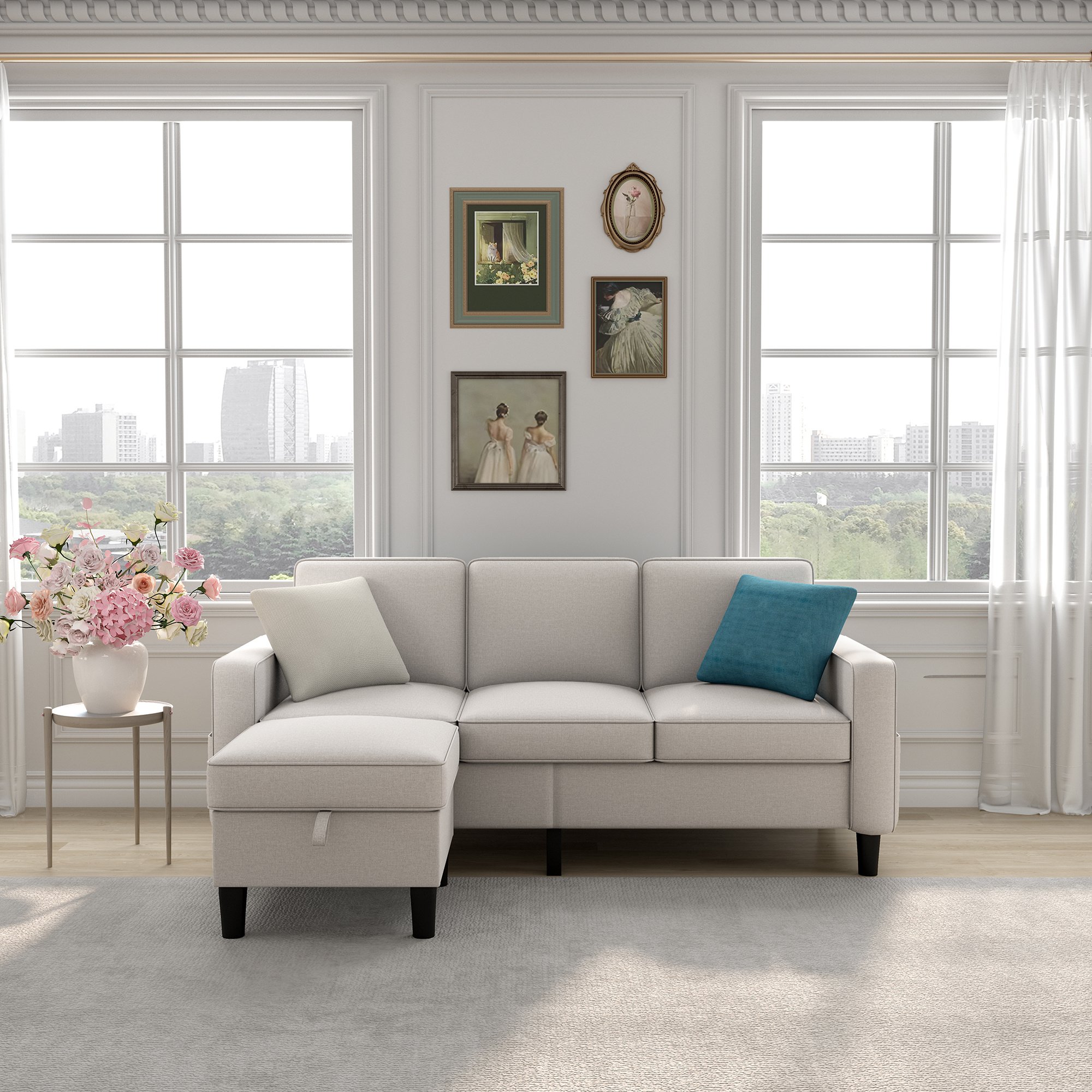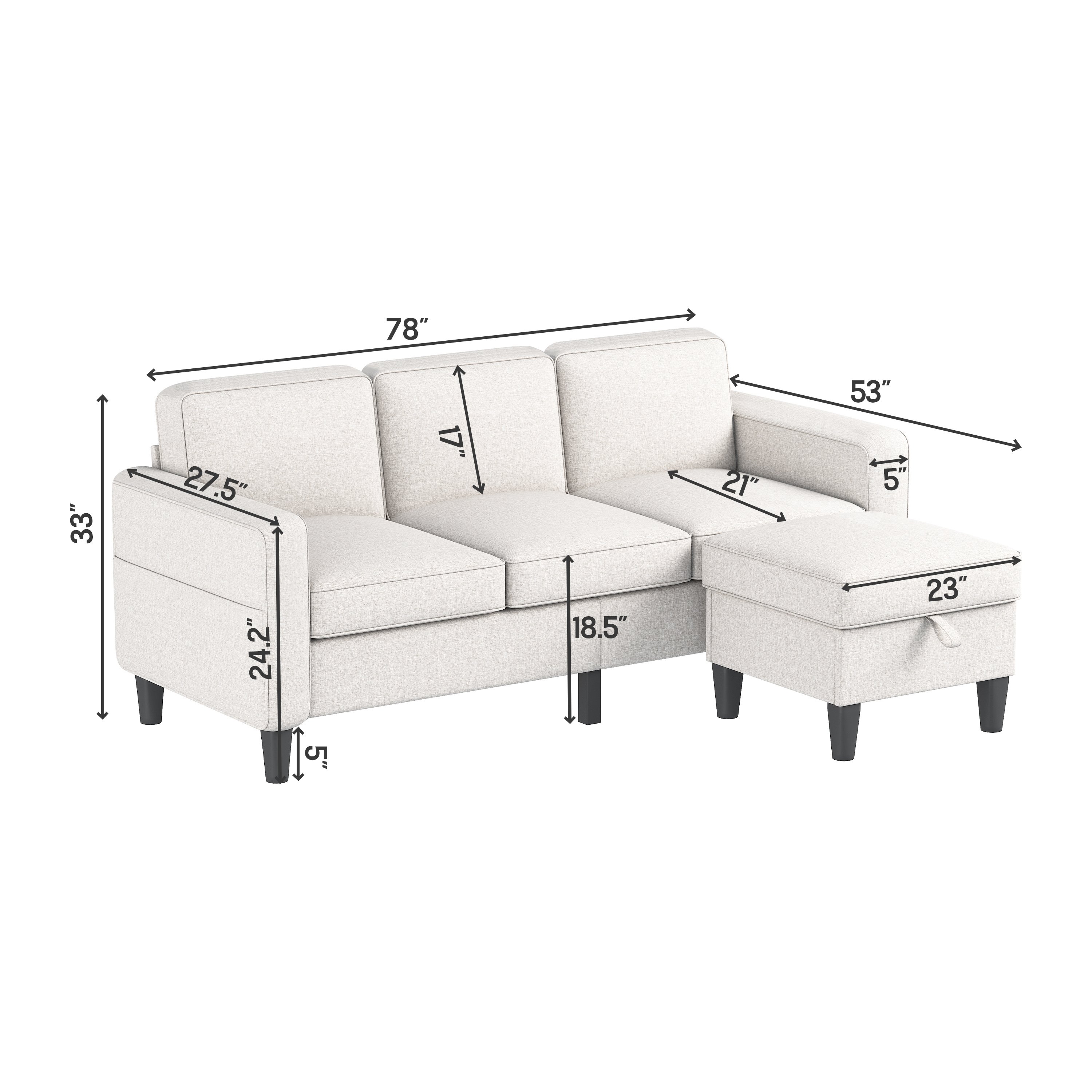 COMFORTABLE:The sectional sofa has an L-shaped design and can accommodate up to 3 people.    It is perfect for receiving guests or creating a cozy space for yourself.
