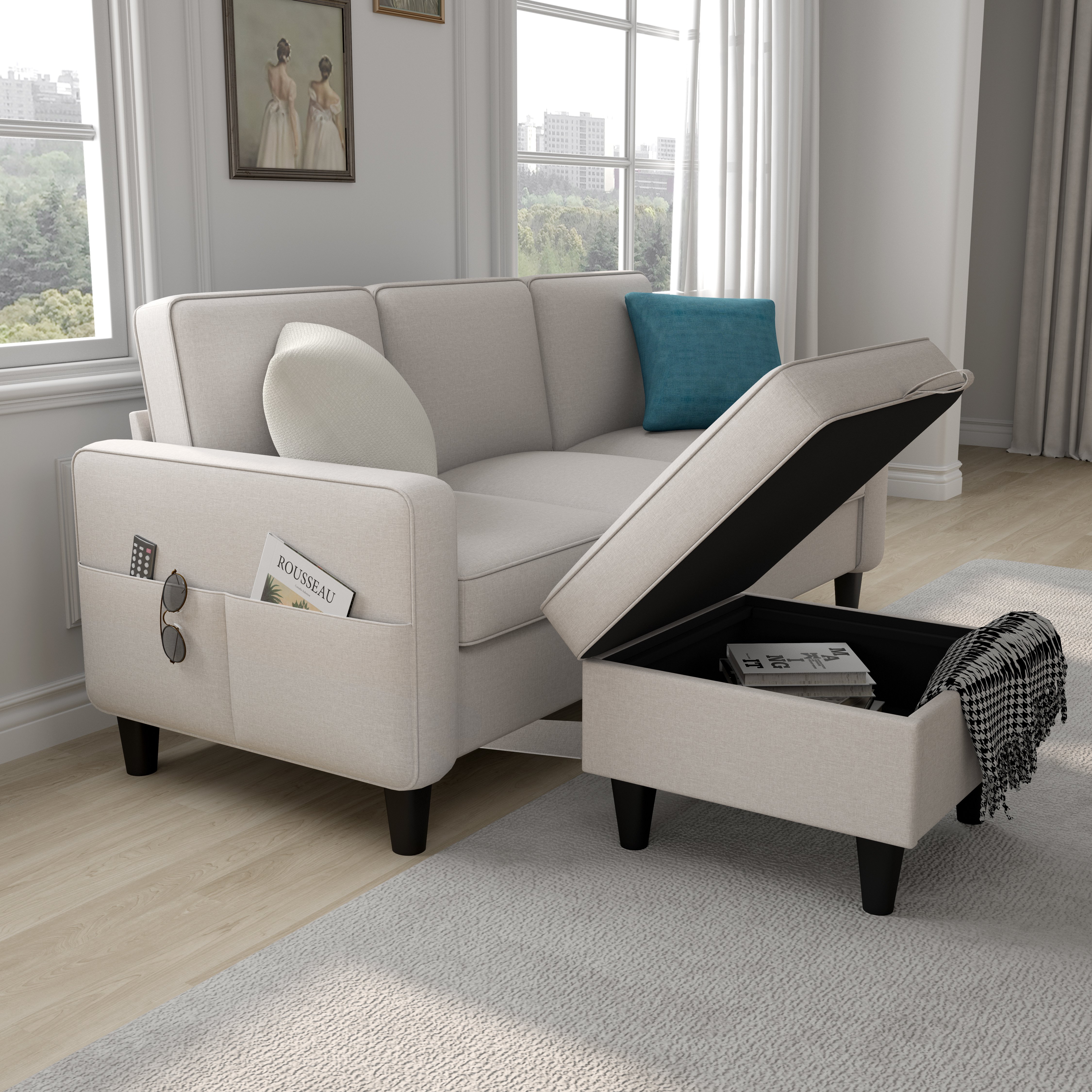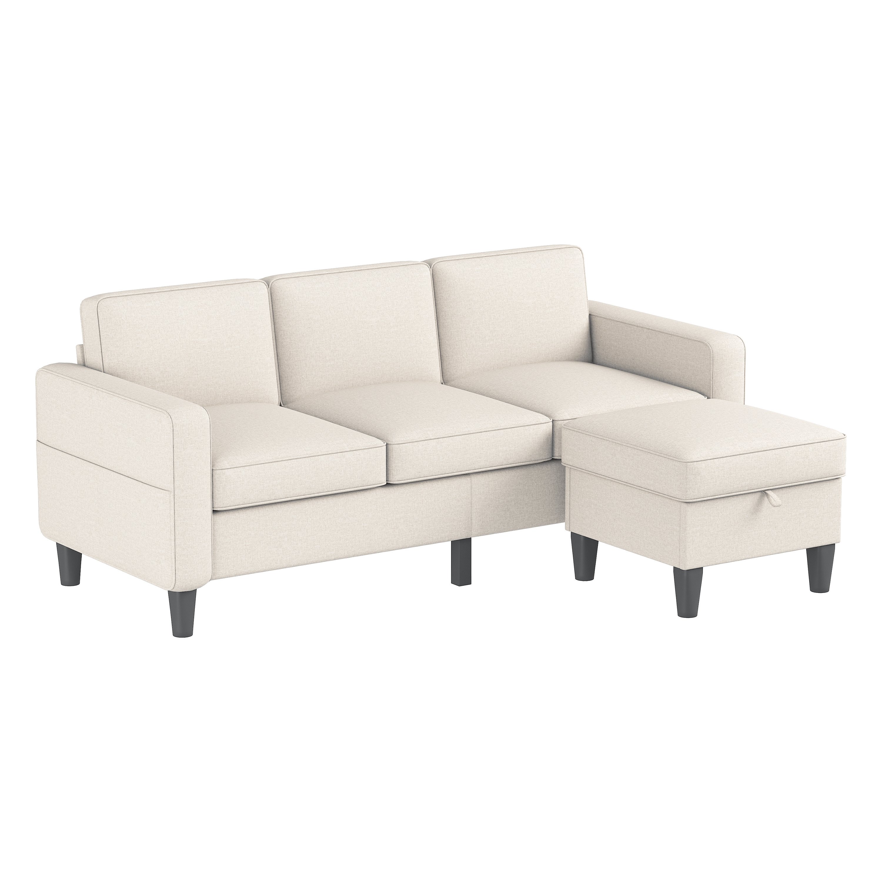 DETACHABLE FOOTSTOOL: The combination sofa features a detachable footstool that allows you to easily turn it into a recliner.    The footstool also has a storage function to keep your small items organized.