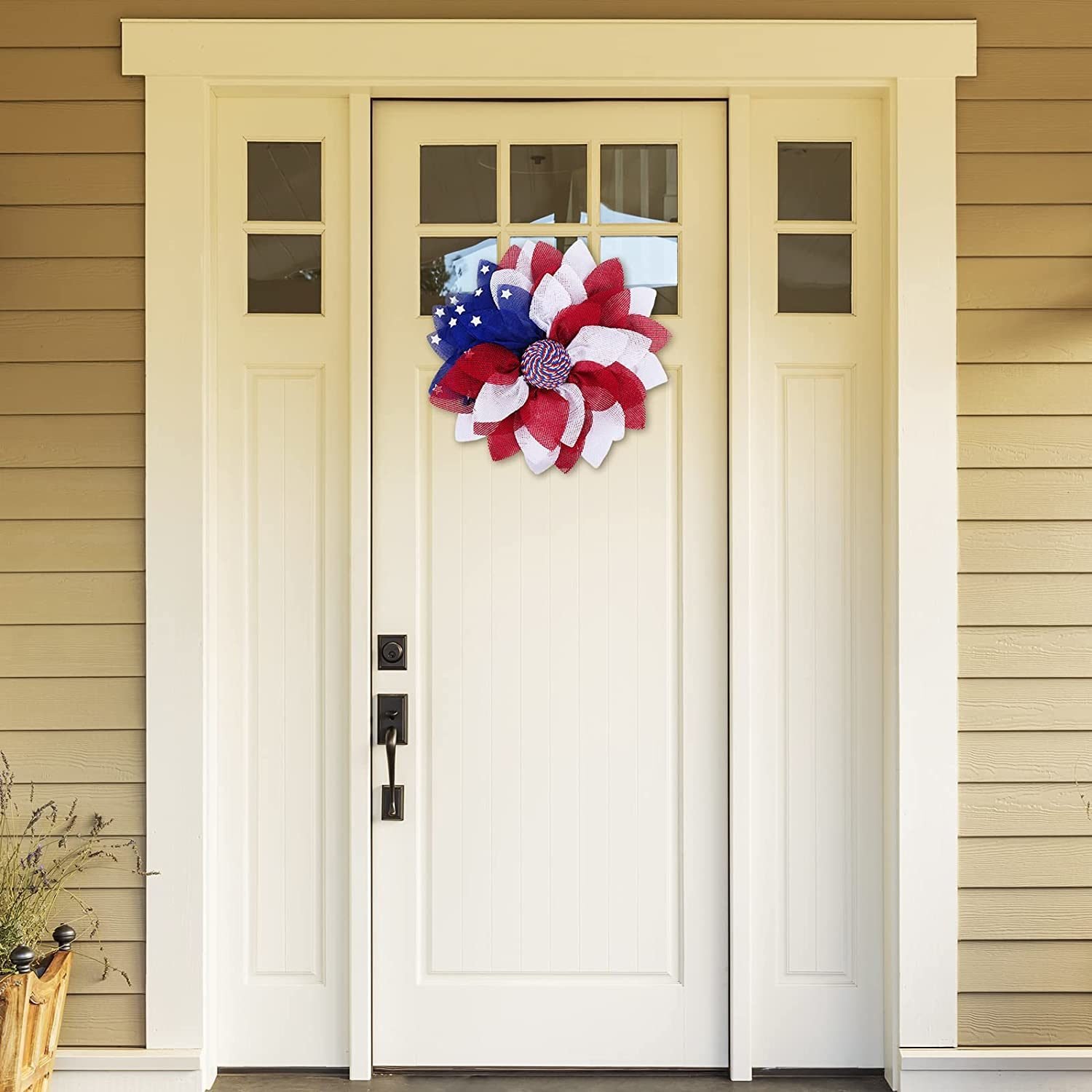 1.What You Will Get - 1 patriotic wreath bow is included in the package, the exquisite wreath are indispensable adornment for decorating your home and party on Independence Day.