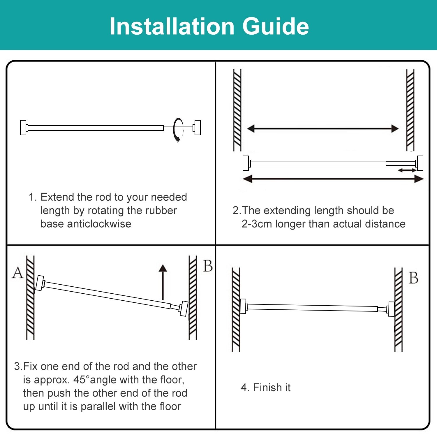 *Wide Applications*:Our tension rod can be used in bathroom,wardrobe,kitchen,balcony,etc. to hang window curtain,shower curtain and towels,hold kitchenware and organize clothes,ties,jewelry and so on.