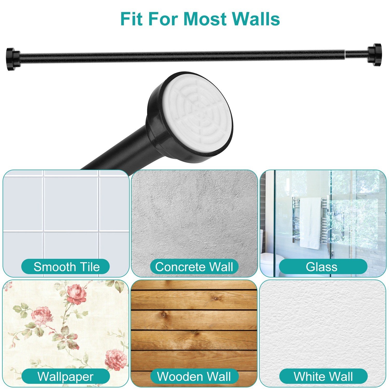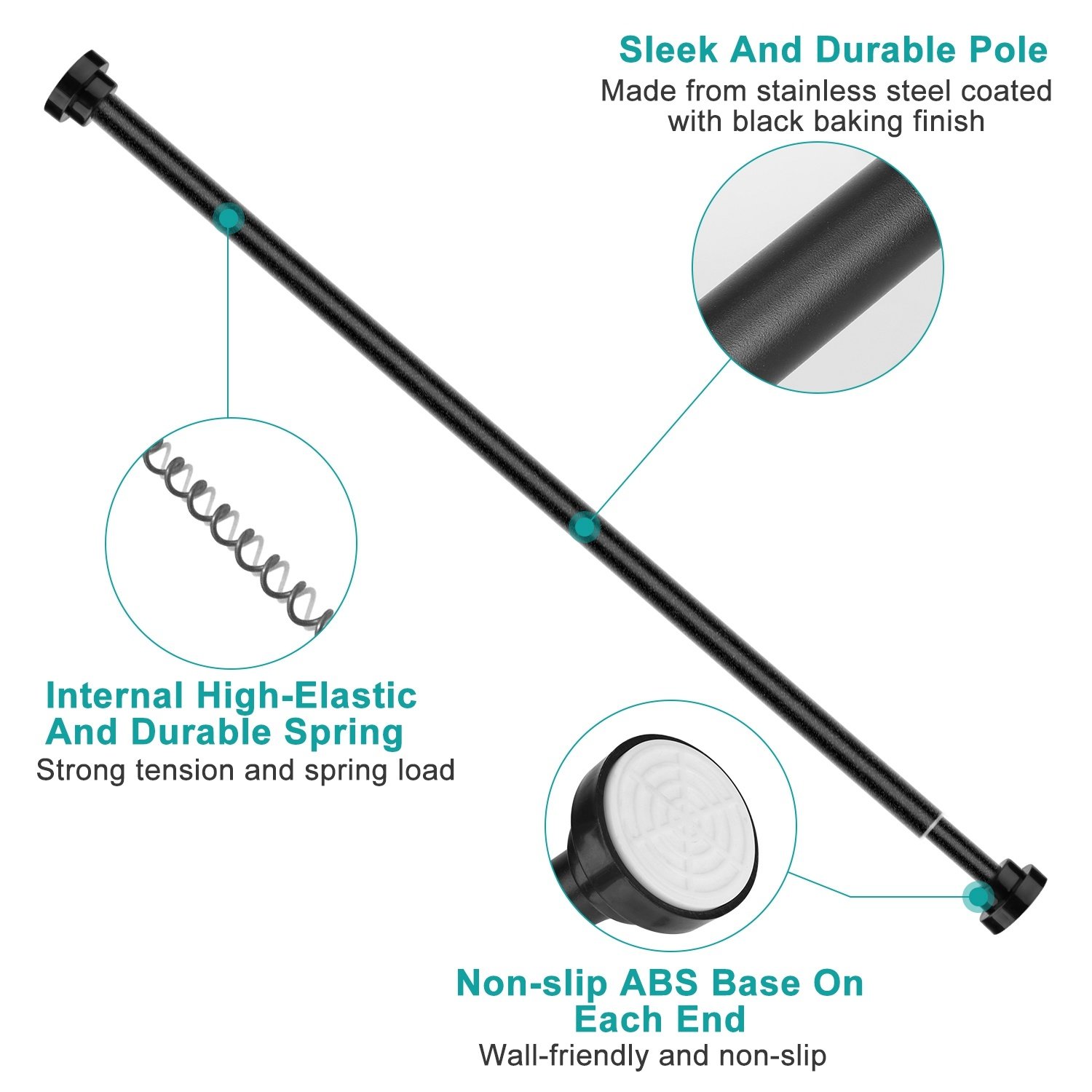 *Durable & Non-Slip*:Made from stainless steel coated with black baking finish and provided with 2 non-slip ABS bases,our curtain rod is sleek,durable and not easy to fall off.