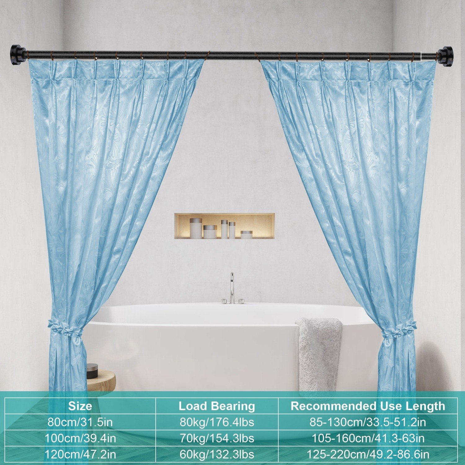 *Strong Load Capacity*:The inbuilt high elastic and durable spring provides strong tension between walls. The curtain rod features 22mm/0.87in rod diameter and high load capacity(80CM:176.4lbs;100CM:154.3lbs;120CM:132.3lbs).