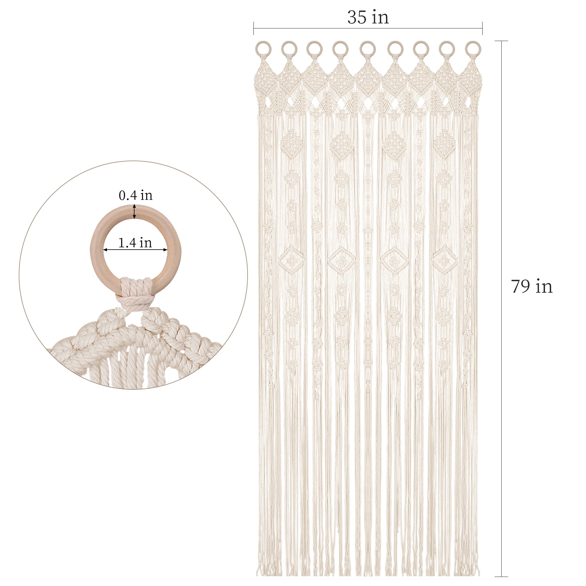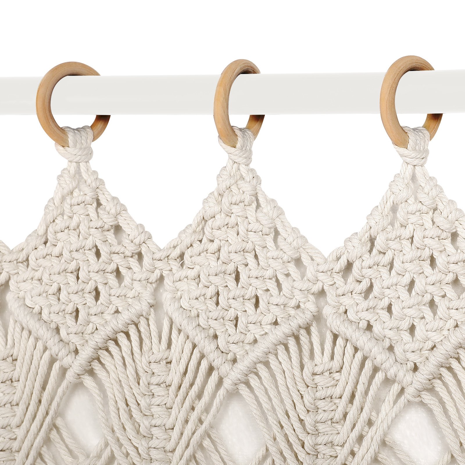 ⭐[PREMIUM WOODED GROMMETS]This macrame curtain replaces ordinary rope loops with high-quality durable wood loops, which makes it easier for curtains to pass through curtain rods or branches, making it easy and quick to hang. Closing and opening the curtain is easier without pulling hard.