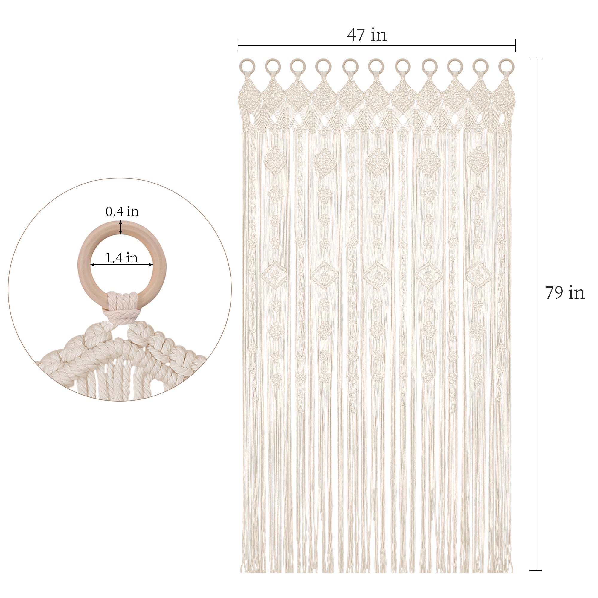 ⭐[SIZE INFO]The package includes 1 panel boho macrame curtain. 1 panel fits most common doors, 2 panels can be used as window curtains, room dividers, wedding backdrops, and the length can be cut. This elegant macrame curtain is a perfect gift for family and friends who love boho and macrame art.