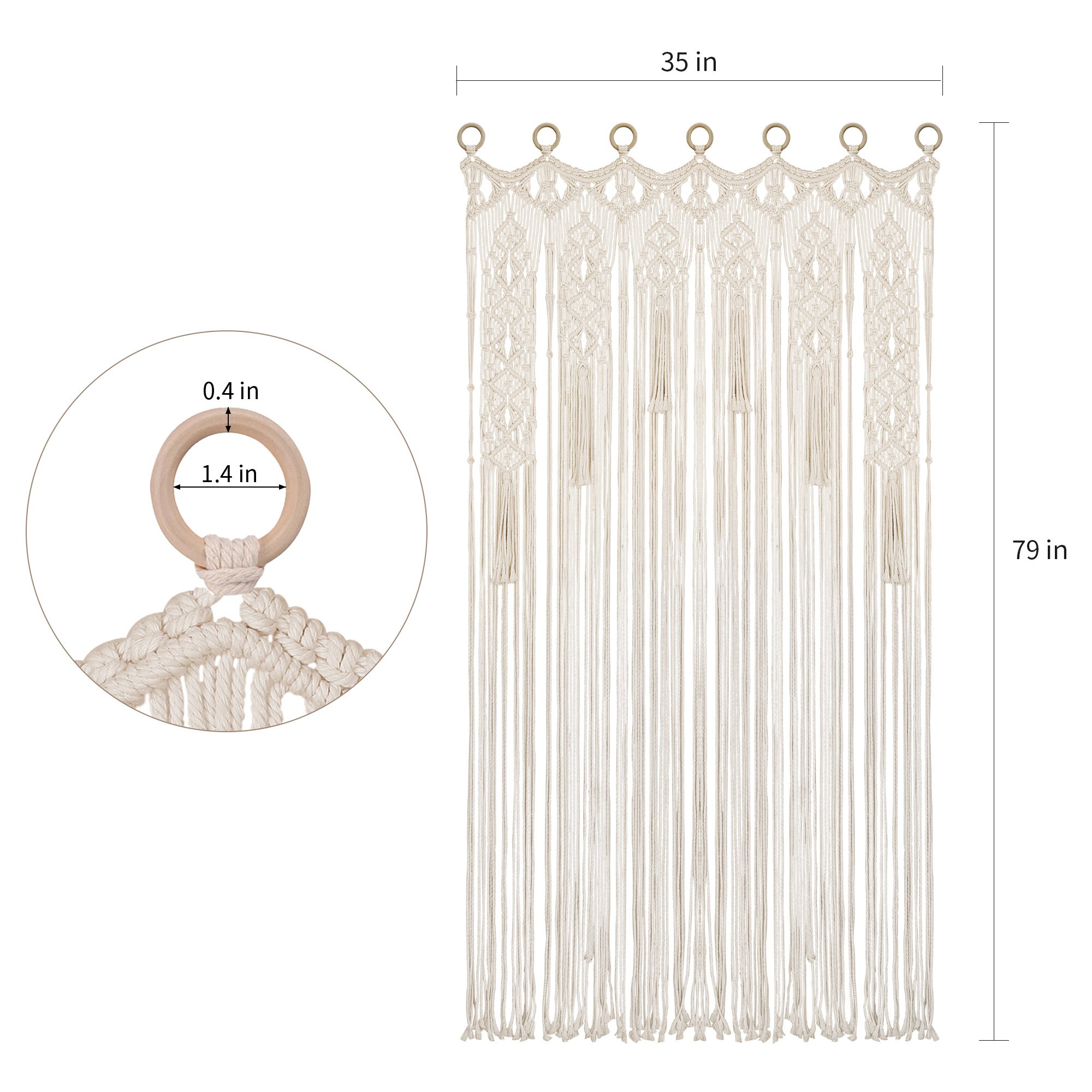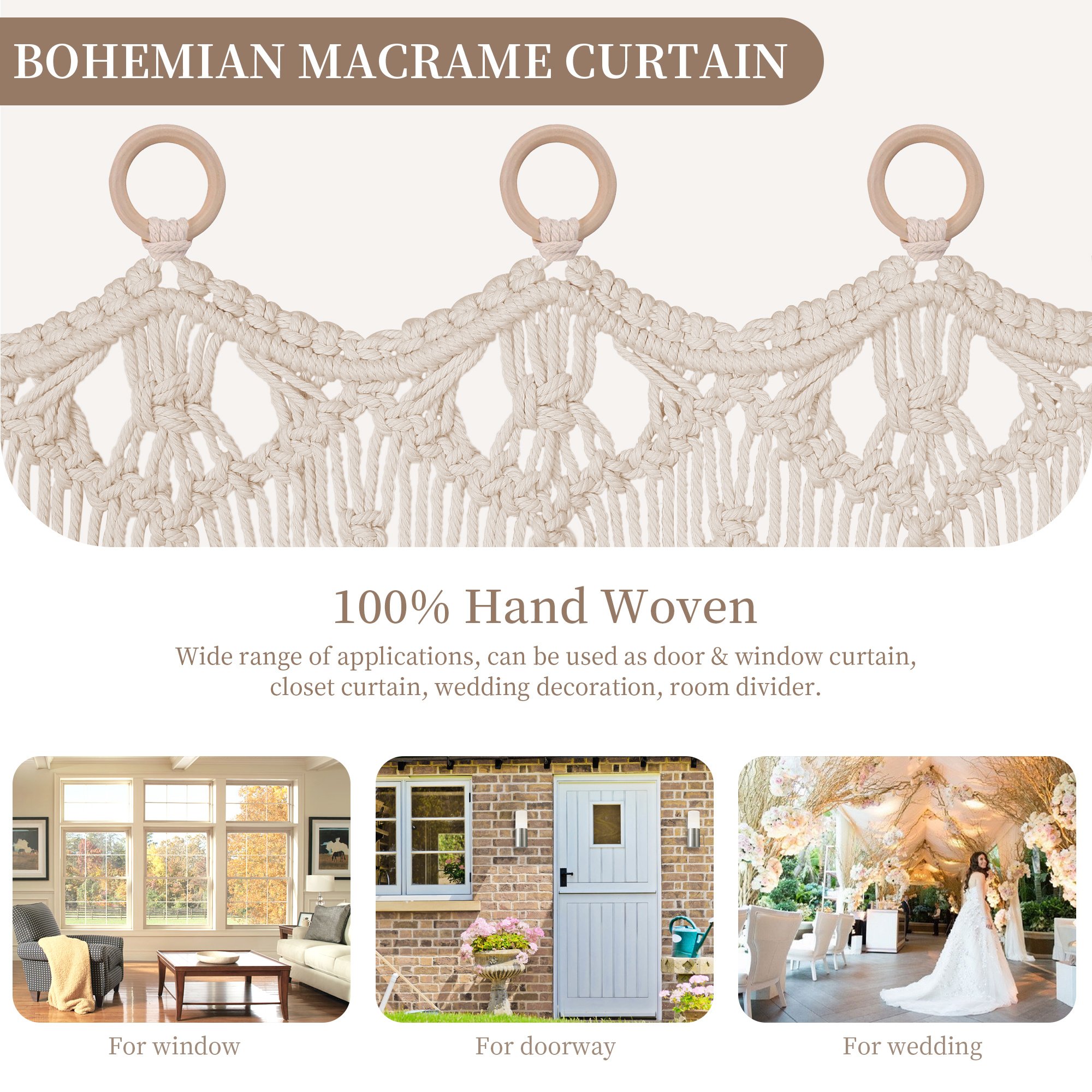 ⭐[PREMIUM WOODED GROMMETS]This macrame curtain replaces ordinary rope loops with high-quality durable wood loops, which makes it easier for curtains to pass through curtain rods or branches, making it easy and quick to hang. Closing and opening the curtain is easier without pulling hard.