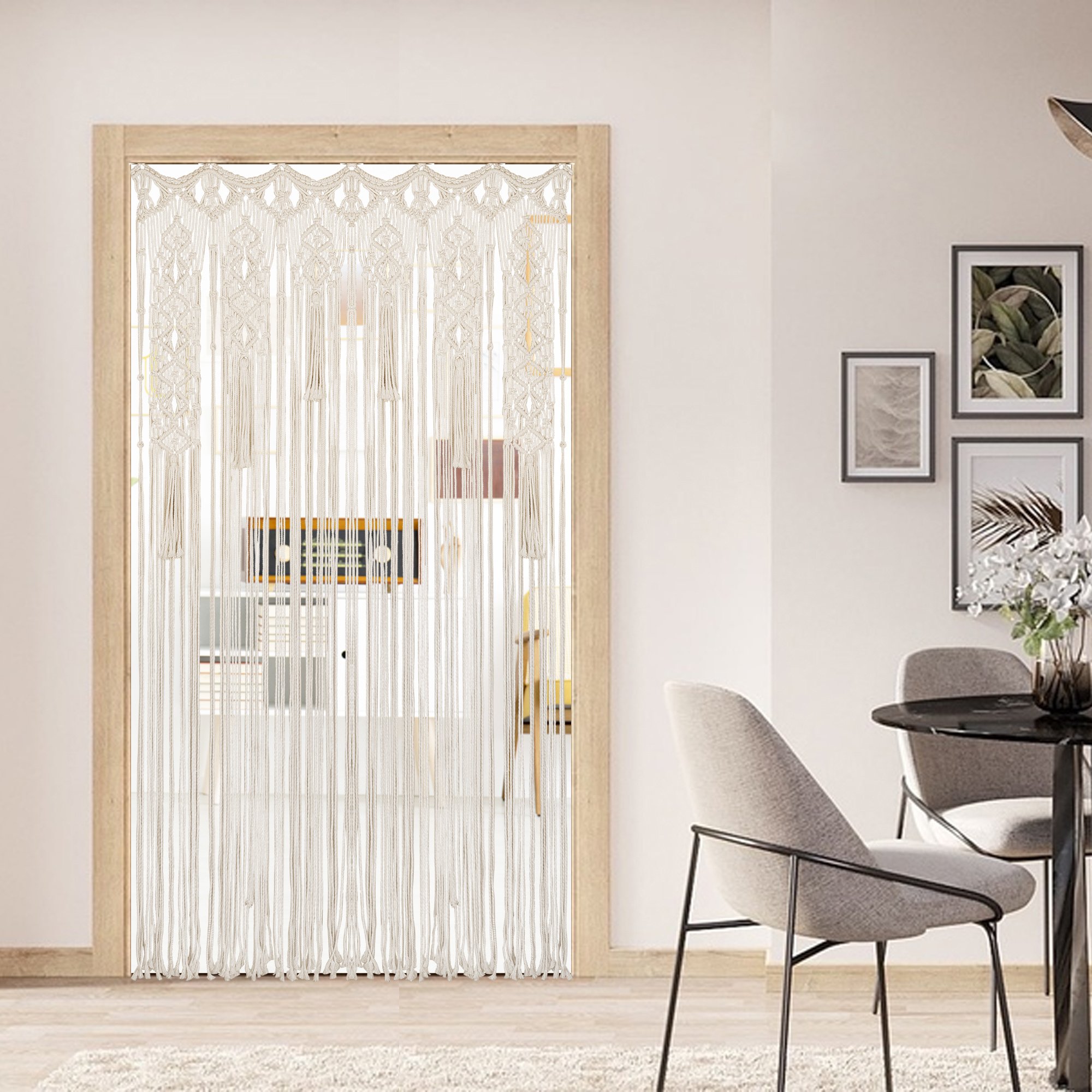 ⭐[SIZE INFO]The package includes 1 panel boho macrame curtain. 1 panel fits most common doors, 2 panels can be used as window curtains, room dividers, wedding backdrops, and the length can be cut. This elegant macrame curtain is a perfect gift for family and friends who love boho and macrame art.