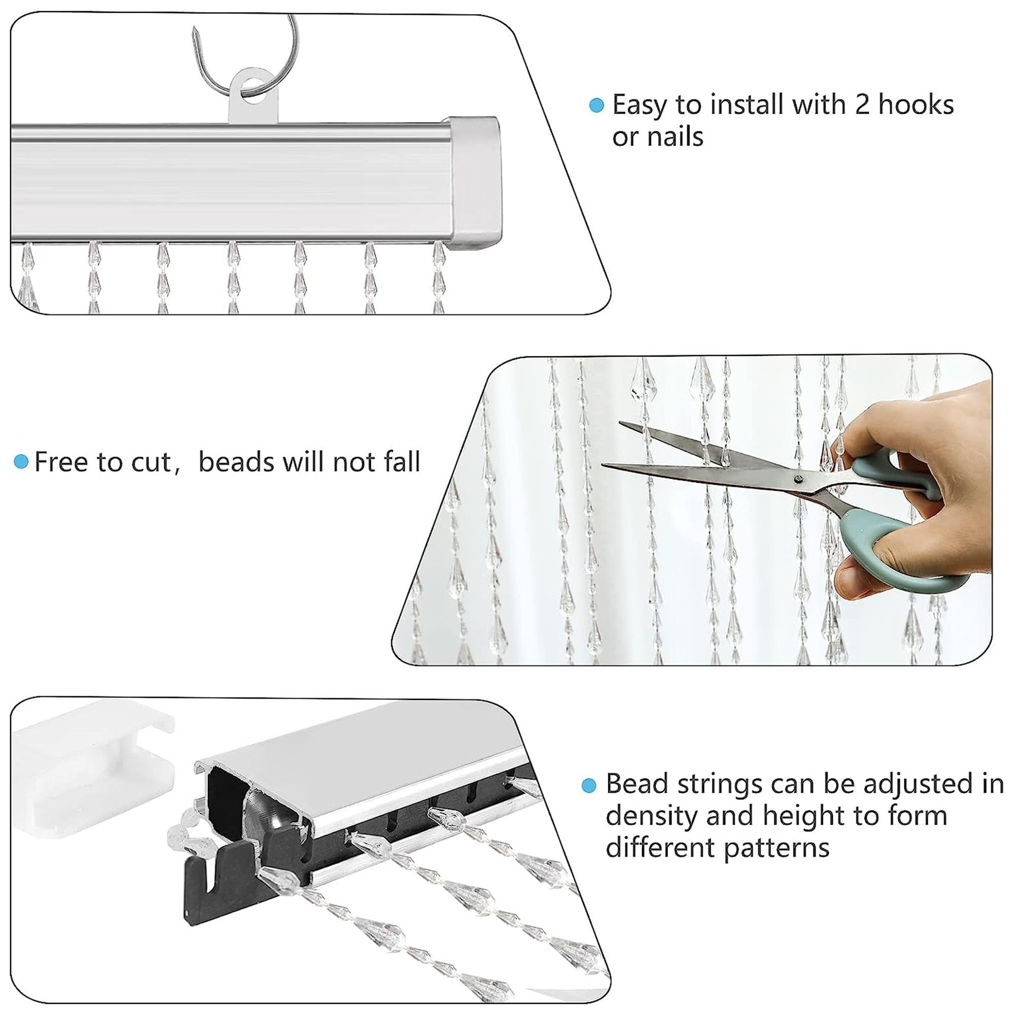 [High-quality & Durable]The crystal bead curtain is made of high-quality acrylic, very beautiful and versatile, waterproof and easy to hang. Each beading thread is cast with 3 strands of polyester thread, making it very strong and not easy to break.