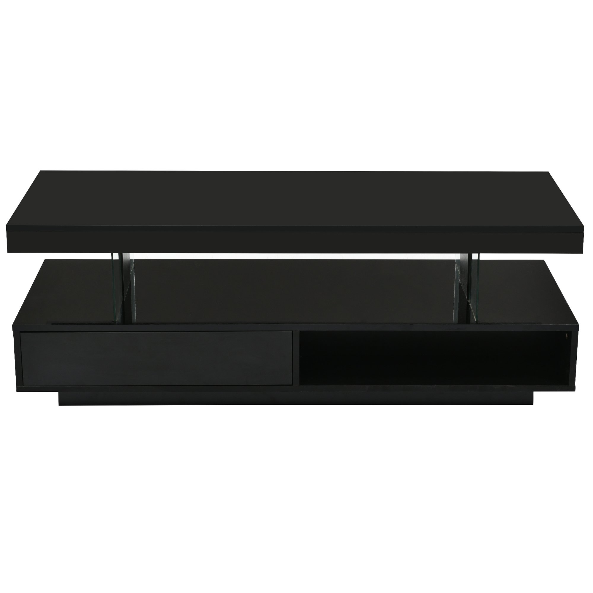 Our High Gloss Coffee Table is adorned with LED lights, whether you're looking for a warm and cozy atmosphere or a vibrant and dynamic ambiance, the LED lights can be easily adjusted to suit your mood or occasion.The coffee table comes with built-in storage compartments hidden beneath the tabletop. This provides ample space to store magazines, remote controls, and other essential items, keeping your living room clutter-free. When you're hosting a casual gathering with friends or enjoying a quiet evening alone, this coffee table brings a touch of modernity and sophistication to your living room.
